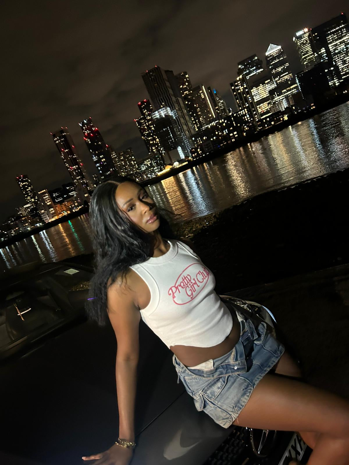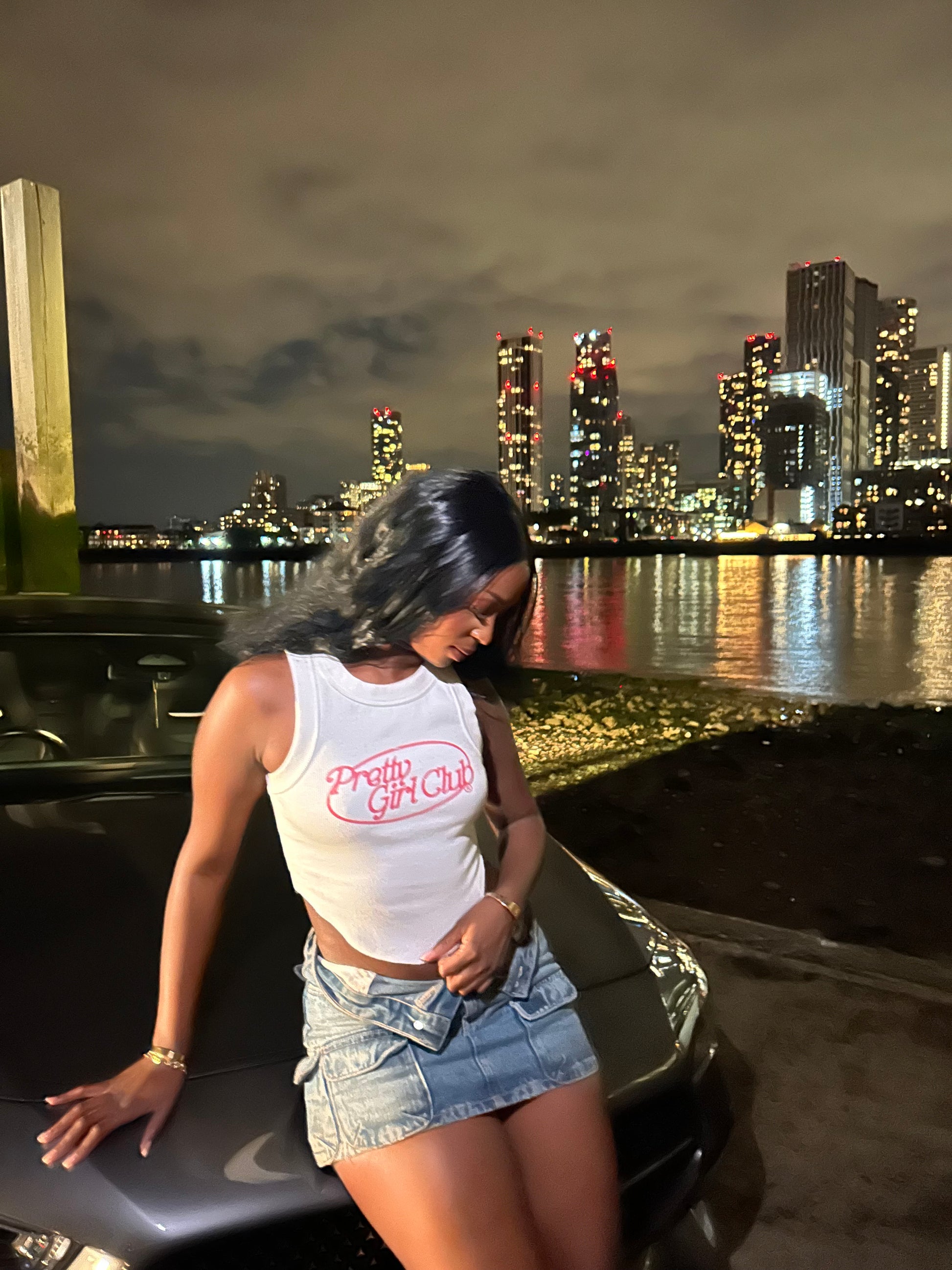 Soft ribbed cotton with a cropped, body-hugging fit. Lightweight, flattering, and easy to style day or night. Finished with the signature Pretty Girl Club logo.